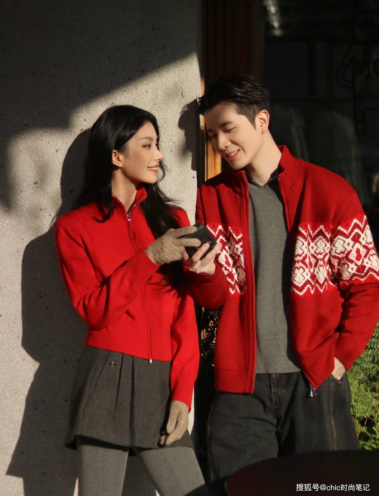 一般选择红色元素作为上衣,可以有效的吸人眼球,比如红色棒球服、红色毛衣等,男生下身搭配卡其色裤子,女生搭配棕色短裙,整体穿搭极为和谐。